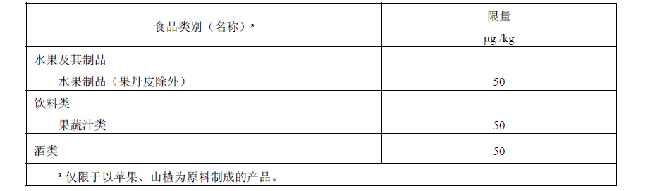 表1食品中展青霉素限量指標