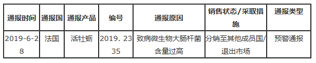 據(jù)歐盟食品飼料類(lèi)快速預(yù)警系統(tǒng)(RASFF)消息,2019年6月28日,法國(guó)通過(guò)RASFF通報(bào)本國(guó)的活牡蠣不合格,因?yàn)檫@些產(chǎn)品中大腸桿菌的計(jì)數(shù)過(guò)高。