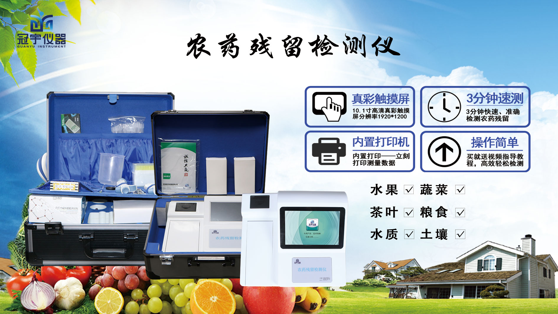 冠宇農(nóng)藥殘留檢測儀是依據(jù)國家標(biāo)準(zhǔn)方法(GB/T5009.199-2003)以及世界衛(wèi)生組織WHO、世界糧農(nóng)組織FAO殘留農(nóng)藥檢測標(biāo)準(zhǔn)、世界環(huán)境保護(hù)局EPA參照攝入量等要求來設(shè)計(jì)。采用酶抑制率比色法對水果、蔬菜等農(nóng)林產(chǎn)品中有機(jī)磷和氨基甲酸酯類農(nóng)藥含量進(jìn)行快速準(zhǔn)確的檢測。