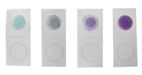 1.2:將潔凈度速測卡圓型藥片向上平放在臺面上。滴1滴檢測試劑B到圓型藥片上,如果物體表面較臟的話,1 min內(nèi)藥片就會變?yōu)樽仙?,即可判定被檢物體不潔凈,否則需要等待10min與標(biāo)準(zhǔn)比色板進行比較確定結(jié)果。