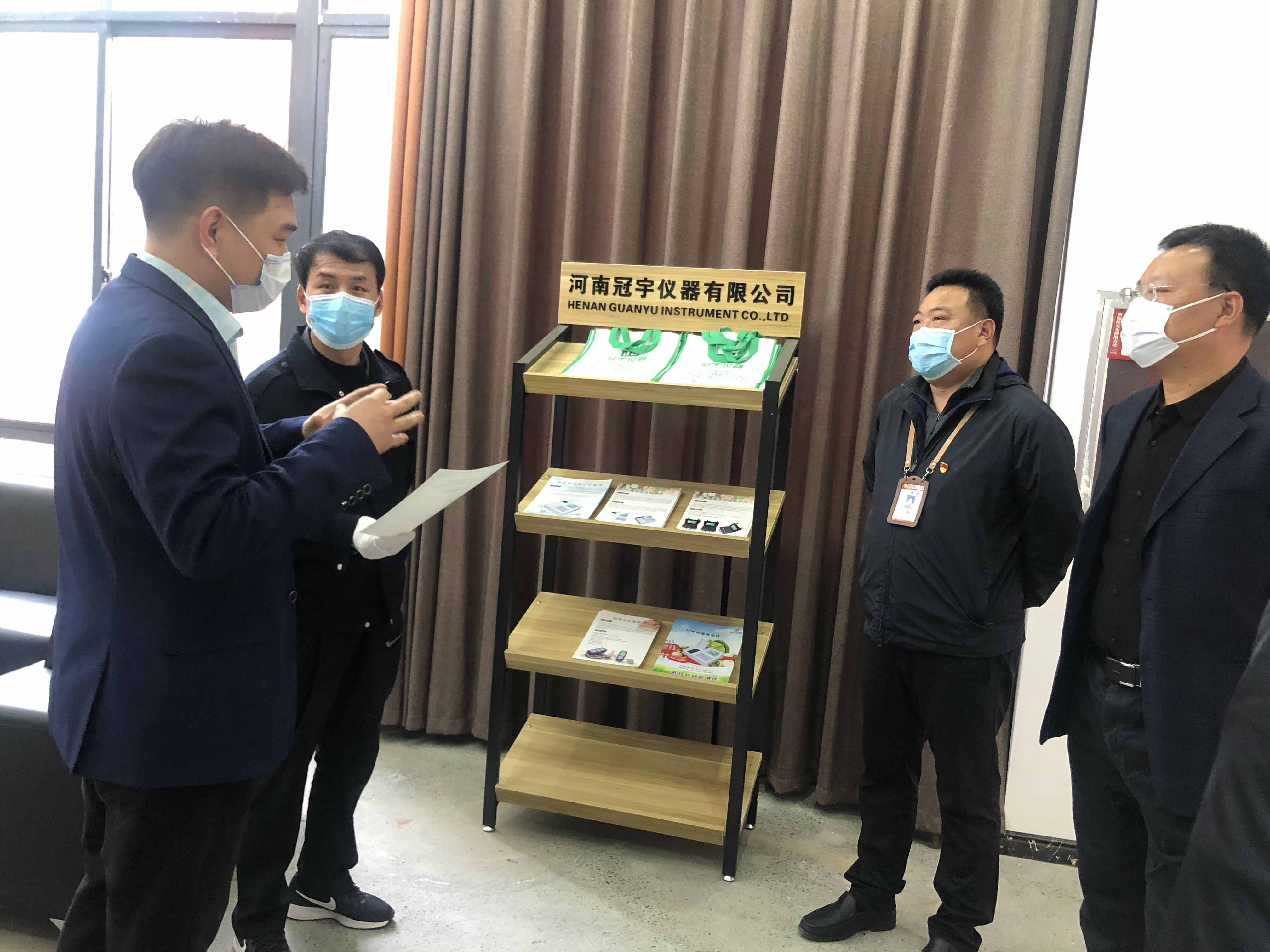 2020年3月16日下午,新鄭市黨委苗瑞光、薛店鎮(zhèn)書記安廣濤一行,下午來河南冠宇儀器有限公司參觀考察,公司總經(jīng)理許世偉熱情接待??疾炱陂g,各位領(lǐng)導(dǎo)參觀生產(chǎn)車間和研發(fā)實驗室,許世偉總經(jīng)理詳細匯報了公司的產(chǎn)品的原理、技術(shù)先進性、產(chǎn)品推廣現(xiàn)狀及國內(nèi)外前景等,期間新鄭市黨委苗瑞光就產(chǎn)品科技創(chuàng)新、節(jié)能效益分析等問題仔細詢問,總經(jīng)理都一一解答。