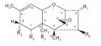 產(chǎn)毒菌株、溫度、通風(fēng)、濕度、日照等因素跟嘔吐毒素產(chǎn)生密切相關(guān)。它廣泛存在于大麥、小麥、玉米和燕麥中。由于中國(guó)傳統(tǒng)飲食習(xí)慣中糧谷比例大大高于西方,使得嘔吐毒素的危害更為突出。