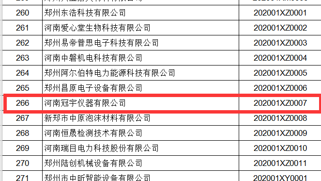根據(jù)《鄭州市科技型企業(yè)評(píng)價(jià)管理辦法》(鄭科規(guī)〔2020〕2號(hào))有關(guān)規(guī)定,經(jīng)企業(yè)申請(qǐng),縣(市、區(qū))及開(kāi)發(fā)區(qū)科技主管部門審核推薦、公示等程序,認(rèn)定河南冠宇儀器有限公司成為“鄭州市科技型中小企業(yè)”。
