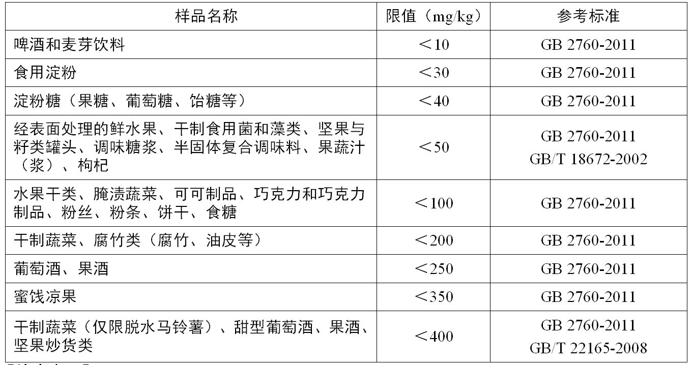 下圖是亞硫酸鹽在食品中的限量國(guó)標(biāo):
