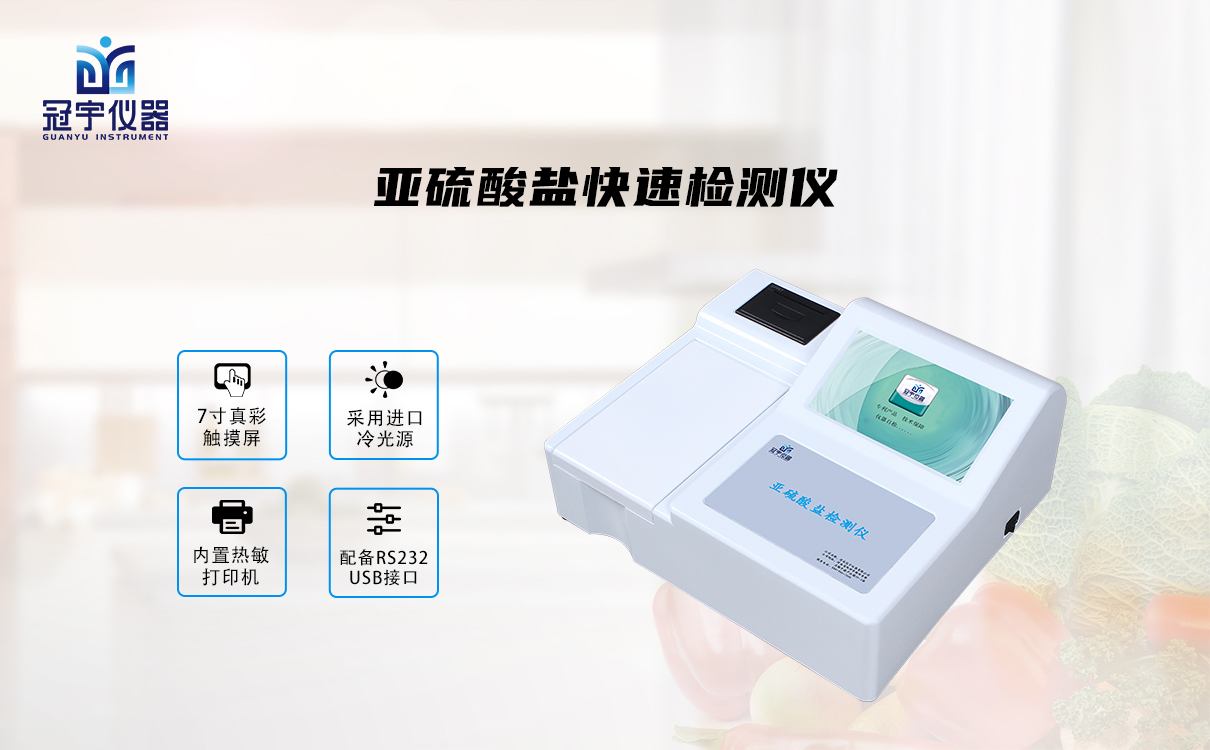 冠宇儀器亞硫酸鹽快速檢測(cè)儀能夠快速檢測(cè)竹筍、蜜餞涼果、餅干、粉絲、白糖、淀粉、陳糧、米粉、烤魚(yú)片、魷魚(yú)絲、蟹肉、魚(yú)糜、魚(yú)干、黃花菜、果脯、巧克力、葡萄酒、啤酒及麥芽飲料等中的亞硫酸鹽含量。適用于食品監(jiān)測(cè)中心、食品生產(chǎn)加工、食品加工貿(mào)易、食品生產(chǎn)廠家自查、工商質(zhì)監(jiān)部門(mén)用于市場(chǎng)快速篩查等。