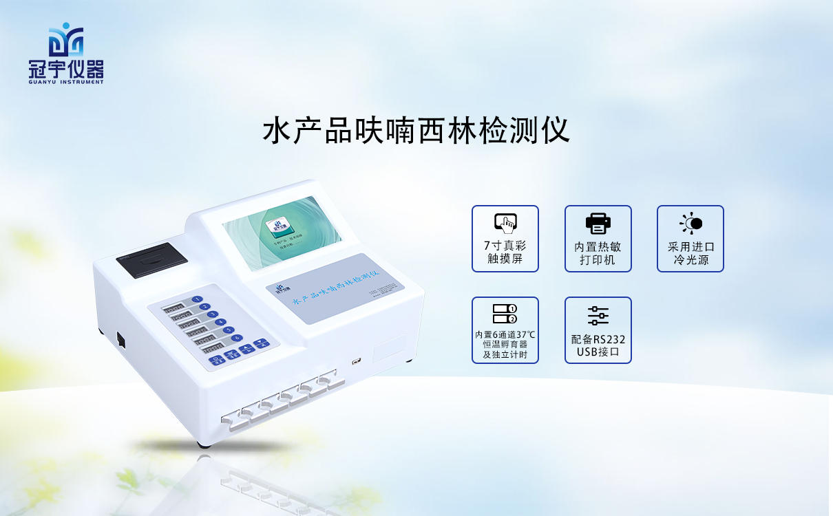 河南冠宇儀器有限公司專業(yè)生產(chǎn)呋喃西林檢測儀應(yīng)用競爭抑制免疫層析的原理,通過檢測線熒光定量卡中的熒光強弱程度,定量分析待檢樣品中呋喃西林殘留含量。適用于水產(chǎn)監(jiān)測中心、水產(chǎn)飼料生產(chǎn)加工、水產(chǎn)食品加工貿(mào)易、水產(chǎn)養(yǎng)殖戶自查、工商質(zhì)監(jiān)部門用于市場快速篩查等。
