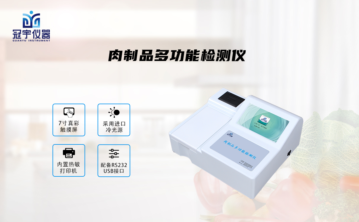 冠宇儀器肉制品多功能檢測(cè)儀GY-DS1007能夠快過氧化值,硼砂,揮發(fā)性鹽基總氮,山梨酸,磷酸鹽,焦磷酸鹽,焦磷酸二氫鈉,六偏磷酸鹽,三聚磷酸鹽,肉制品酸價(jià),脂肪,苯并芘的含量??焖勹b別肉品種的多種質(zhì)量安全指標(biāo)。
