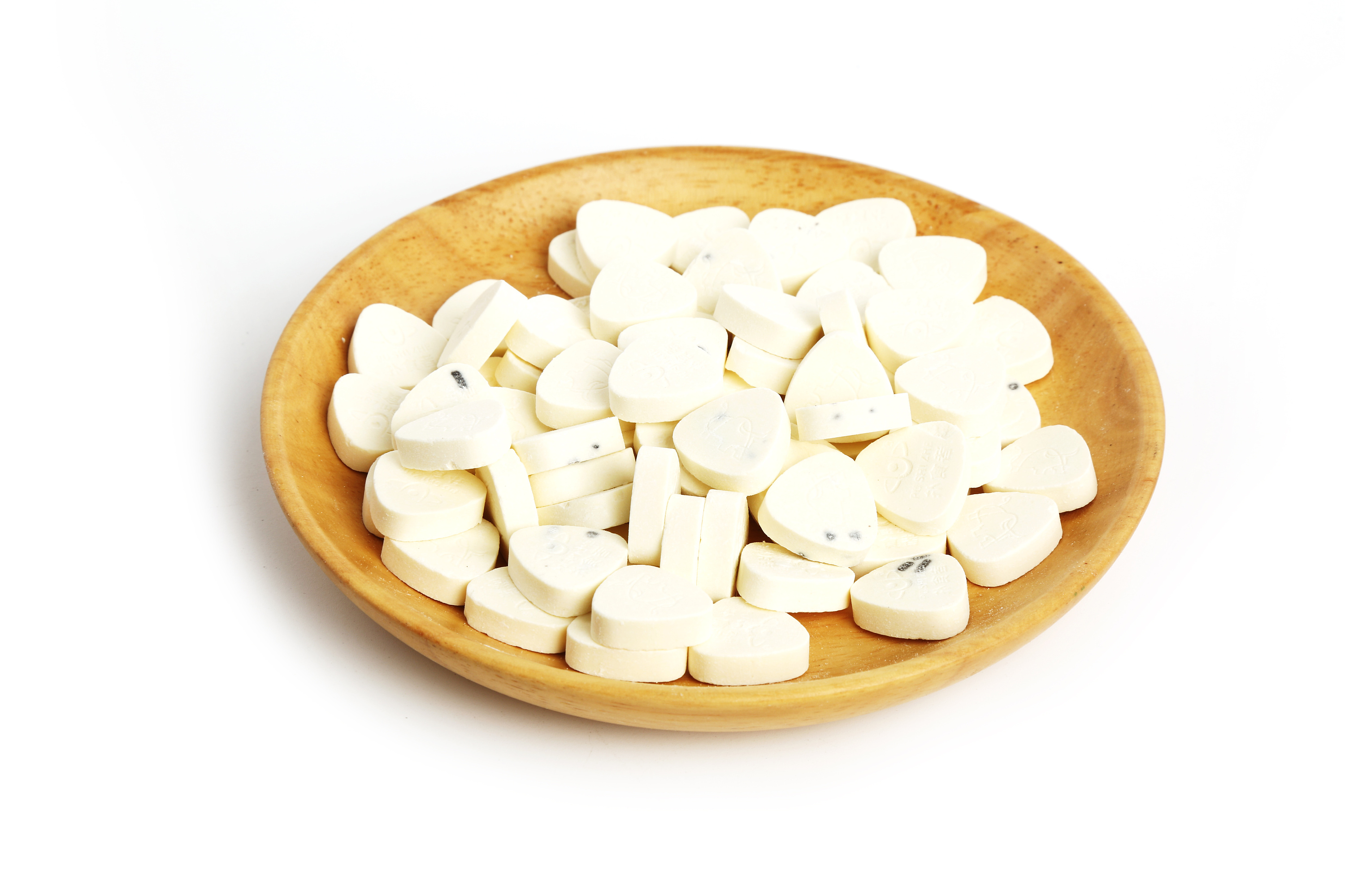現(xiàn)在市售的奶片有許多種,比如奶酪片、羊奶片、牛奶片、奶球、酸奶干、奶味奶酪、牛初乳奶貝和奶酥等。這些產(chǎn)品五花八門,大都以地方特產(chǎn)的身份在市場(chǎng)上銷售。然而仔細(xì)看看配料表就會(huì)發(fā)現(xiàn),除了“奶粉”、“白砂糖”,“植脂末”、“酸味劑”、“甜味劑”、“香精”等添加劑也赫然在列。