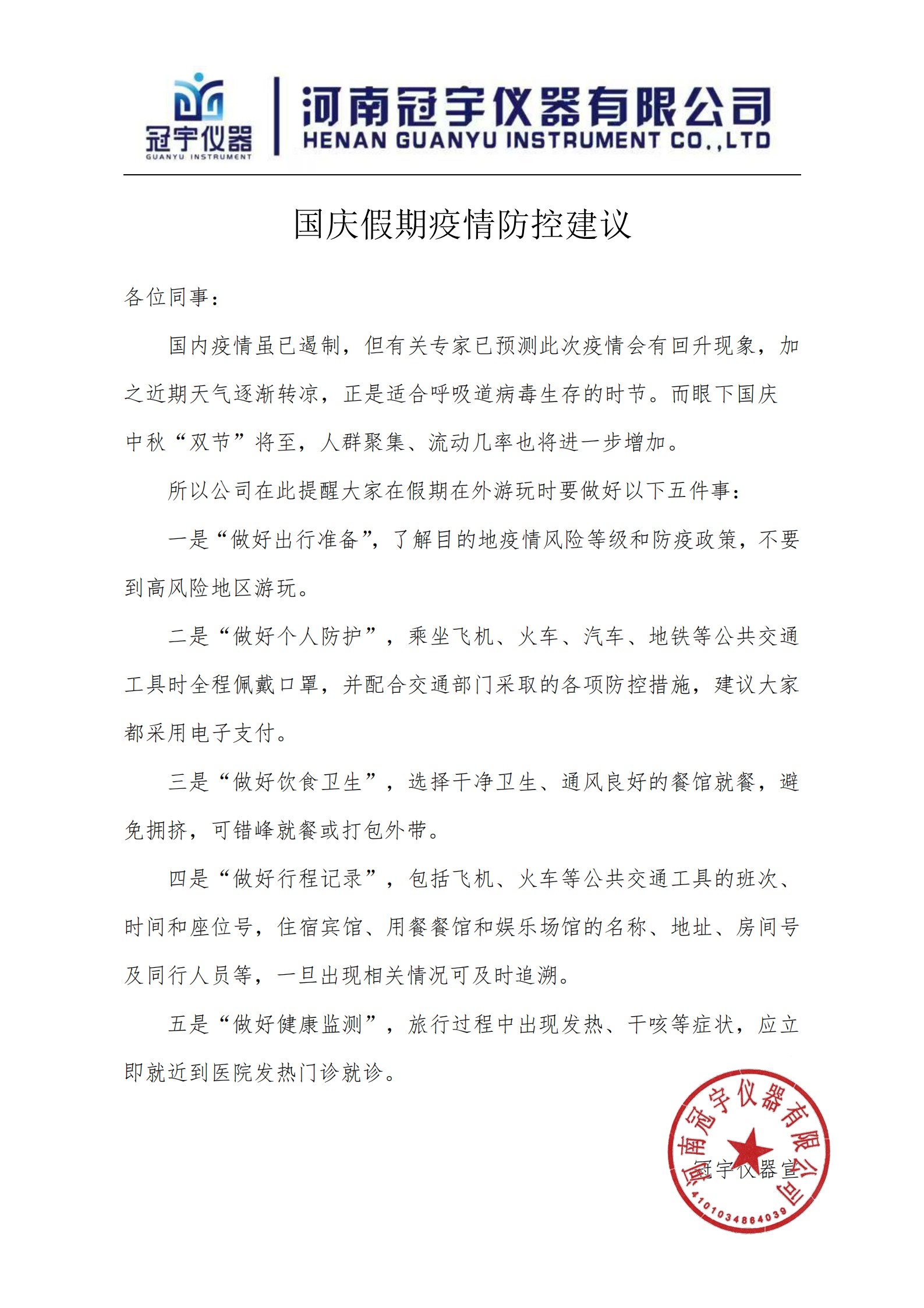 國(guó)慶長(zhǎng)假即將臨近,冠宇儀器在這里提一些疫情防控建議希望能夠?qū)δ兴鶐椭?/span>