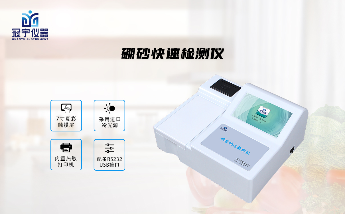 3.運用冠宇儀器硼砂快速檢測儀能夠快速檢測面條、腐竹、米粉、涼粉、涼皮、面條、餃子皮、餛飩、粽子、肉丸、涼皮、肉制品、乳與乳制品、醬油、人造奶油、葡萄酒等食品中的硼砂含量。