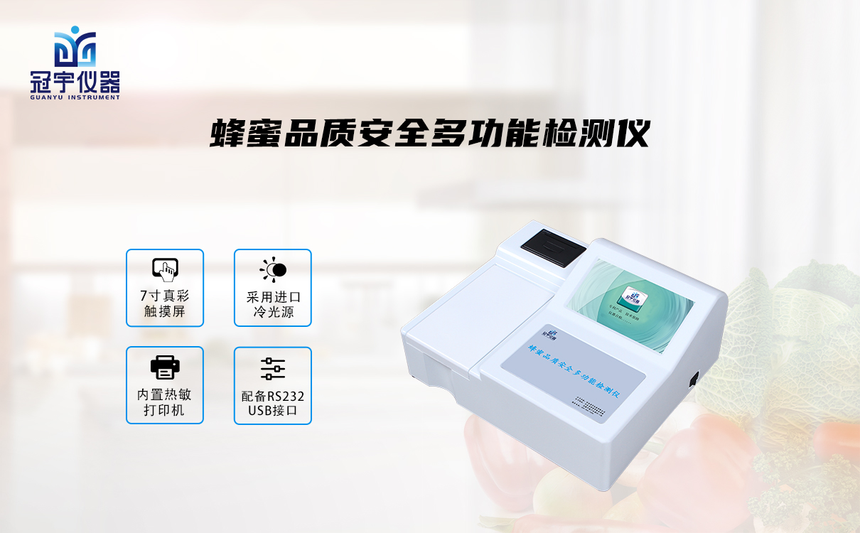 針對蜂蜜安全問題,冠宇儀器自主研發(fā)了一款蜂蜜品質(zhì)安全多功能檢測儀能夠快速檢測蜂蜜水分,蜂蜜酸度,蜂蜜中淀粉,蜂蜜中果糖葡萄糖,蜂蜜中羥甲基糠醛,蜂蜜中飴糖,蜂蜜中蔗糖,蜂膠中黃銅類化合物。適用于蜂蜜監(jiān)測中心、蜂蜜及其制品生產(chǎn)加工貿(mào)易、蜂蜜養(yǎng)殖戶自查、工商質(zhì)監(jiān)部門用于市場快速篩查等。