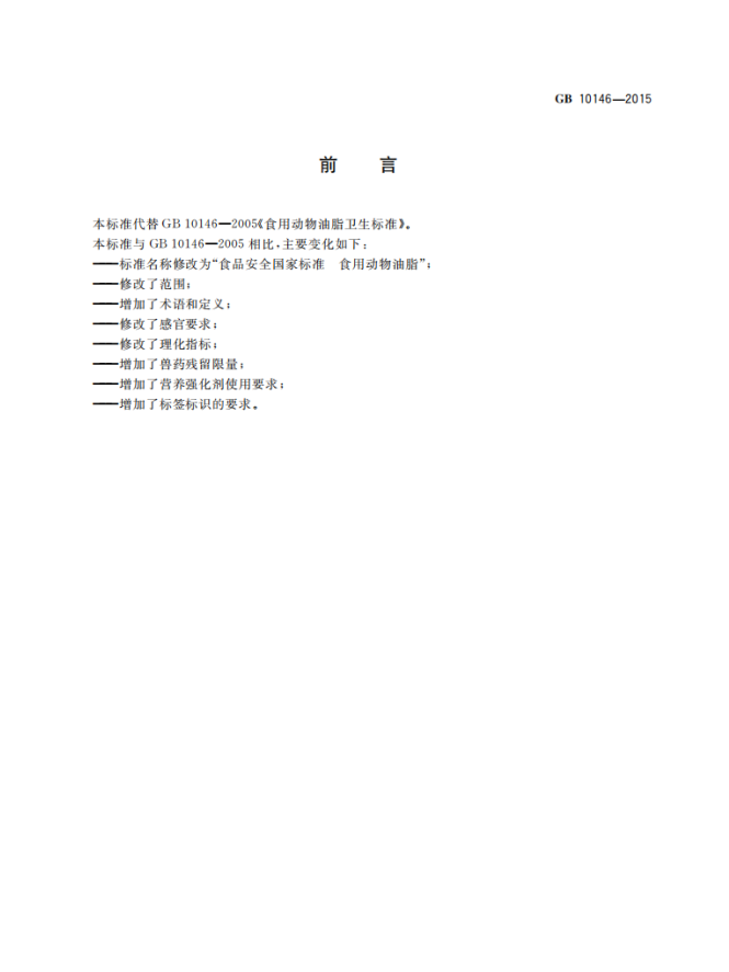 本站食品標(biāo)準(zhǔn)僅供食品技術(shù)同行的交流學(xué)習(xí),不承擔(dān)任何技術(shù)GB 10146-2015 食品安全國(guó)家標(biāo)準(zhǔn) 食用動(dòng)物油脂 ,請(qǐng)通過專門途徑購買國(guó)家發(fā)布的食品標(biāo)準(zhǔn)
