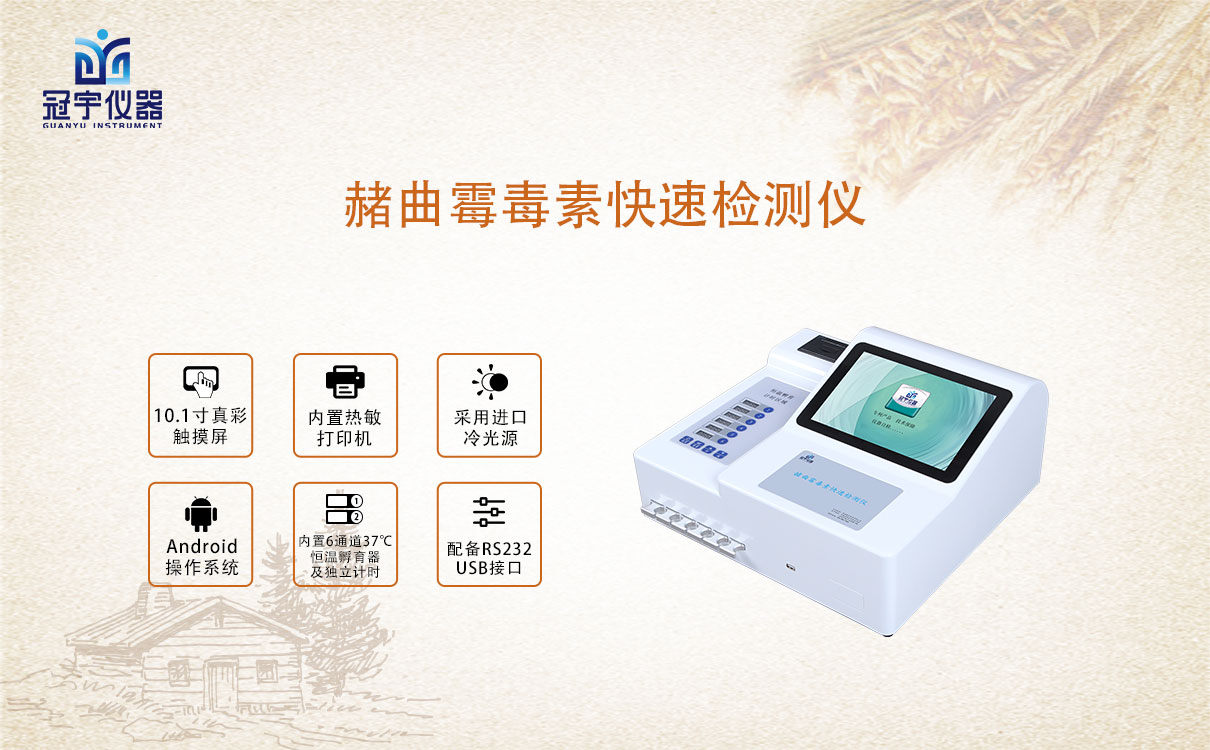 冠宇儀器真菌毒素檢測(cè)儀能夠快速定量檢測(cè)糧食、飼料、谷物、食用油、調(diào)味品等食品中T2毒素、嘔吐毒素、赭曲霉毒素、伏馬毒素、玉米赤霉烯酮,適用于糧油監(jiān)測(cè)中心、糧油飼料生產(chǎn)加工、食品加工貿(mào)易、畜禽養(yǎng)殖戶自查、工商質(zhì)監(jiān)部門(mén)用于市場(chǎng)快速篩查等。杜絕赭曲霉毒素超標(biāo)的糧食原料及食品流入市場(chǎng)。造成危害。