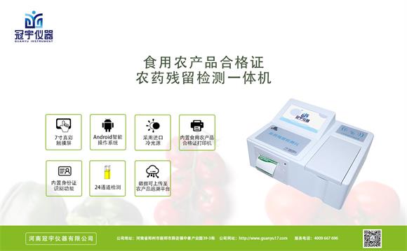 河南冠宇儀器有限公司生產(chǎn)的新一代智能型農(nóng)藥殘留檢測儀是根據(jù)農(nóng)業(yè)標準方法(NY/T 448-2001)和國家標準(GB/T5009.199-2003)中的酶抑制率法,嚴格遵循《GB/T5009.199-2003蔬菜中有機磷和氨基甲酸酯類農(nóng)藥殘留快速檢測方法標準》中的規(guī)定對蔬菜中有機磷和氨基甲酸酯類農(nóng)藥殘留的快速檢測。可廣泛應(yīng)用于各級政府蔬菜檢測中心、農(nóng)貿(mào)市場、超市、環(huán)保機構(gòu)、蔬菜種植基地、飯店、車載及實驗室等食品安全檢測與監(jiān)控場所等單位對果蔬中農(nóng)藥殘留的檢測。
