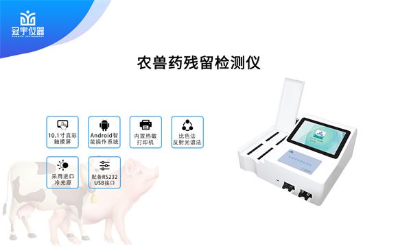 冠宇儀器農(nóng)獸藥殘留檢測(cè)儀可現(xiàn)場(chǎng)快速檢測(cè)農(nóng)藥殘留(有機(jī)磷類農(nóng)藥殘留、氨基甲酸酯類農(nóng)藥殘留、菊酯類農(nóng)藥殘留、有機(jī)氯類農(nóng)藥殘留等)、獸藥殘留(鹽酸克倫特羅、萊克多巴胺、沙丁胺醇、恩諾沙星、氯霉素、磺胺類、喹喏酮類、呋喃類、四環(huán)素類、阿莫西林、孔雀石綠、黃曲霉毒素、環(huán)丙沙星、紅霉素、土霉素、喹乙醇、已烯雌酚等)。適用于食品監(jiān)測(cè)中心、食品農(nóng)產(chǎn)品動(dòng)物源性食品等生產(chǎn)加工、食品加工貿(mào)易、畜禽養(yǎng)殖戶自查、工商質(zhì)監(jiān)部門用于市場(chǎng)快速篩查等。一方面可以確保市場(chǎng)流行食物的安全性,另一方面可以維持社會(huì)上的穩(wěn)定。