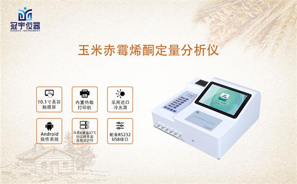 冠宇儀器玉米赤霉烯酮快速測試儀能夠快速定量檢測玉米、小麥、大米、大麥、小米和燕麥等谷物、飼料、面粉、食用油、調(diào)味品中玉米赤霉烯酮,操作簡便,只需一步加樣,無需標(biāo)準(zhǔn)品,無需做標(biāo)準(zhǔn)曲線,采用熒光免疫定量分析儀讀數(shù),結(jié)果準(zhǔn)確可靠且可現(xiàn)場打印,準(zhǔn)確性高度符合HPLC法的檢測結(jié)果,為飼料質(zhì)量安全的快速檢測和控制提供了一種全新的技術(shù)手段,廣泛應(yīng)用于糧油監(jiān)測中心、中藥材加工廠、制藥廠、糧油飼料生產(chǎn)加工、食品加工貿(mào)易、養(yǎng)殖企業(yè)、面粉廠、豆制品加工生產(chǎn)企業(yè)、糧食局、畜禽養(yǎng)殖戶自查、工商質(zhì)監(jiān)部門用于市場快速篩查等。
