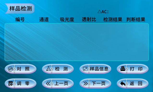 進(jìn)入儀器主頁界面,點擊主頁界面中的【樣品檢測】進(jìn)行針對樣品的檢測。