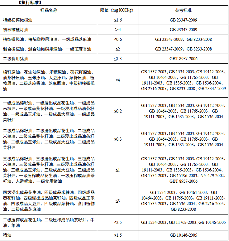 油脂在貯存期間,由于微生物、水分、溫度、光照、脂肪酶等因素的作用發(fā)生緩慢水解,產(chǎn)生游離脂肪酸,其置于油中使酸價(jià)增大,貯存穩(wěn)定性降低。酸價(jià)可作為油脂脂肪水解程度的指標(biāo),亦可作為酸敗程度的指標(biāo)。酸價(jià)越小,即油脂質(zhì)量越好,精煉程度和新鮮度越好。一般要求食用植物油的酸價(jià)不得>5 mg KOH/g,酸價(jià)略高不會(huì)對(duì)人體健康產(chǎn)生損害;但如果酸價(jià)過高,則會(huì)導(dǎo)致人體腸胃不適、腹瀉并損害肝臟,因此酸價(jià)測(cè)定結(jié)果的準(zhǔn)確性對(duì)人體健康非常重要。