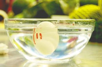 1.2:加入200ml純凈水,將雞蛋放入溶液中,懸?。ú荒芟鲁粒┑牡盀殛惻f或腐壞蛋(試劑可重復(fù)使用,用完后蓋上蓋子放于通風(fēng)干燥處即可)。