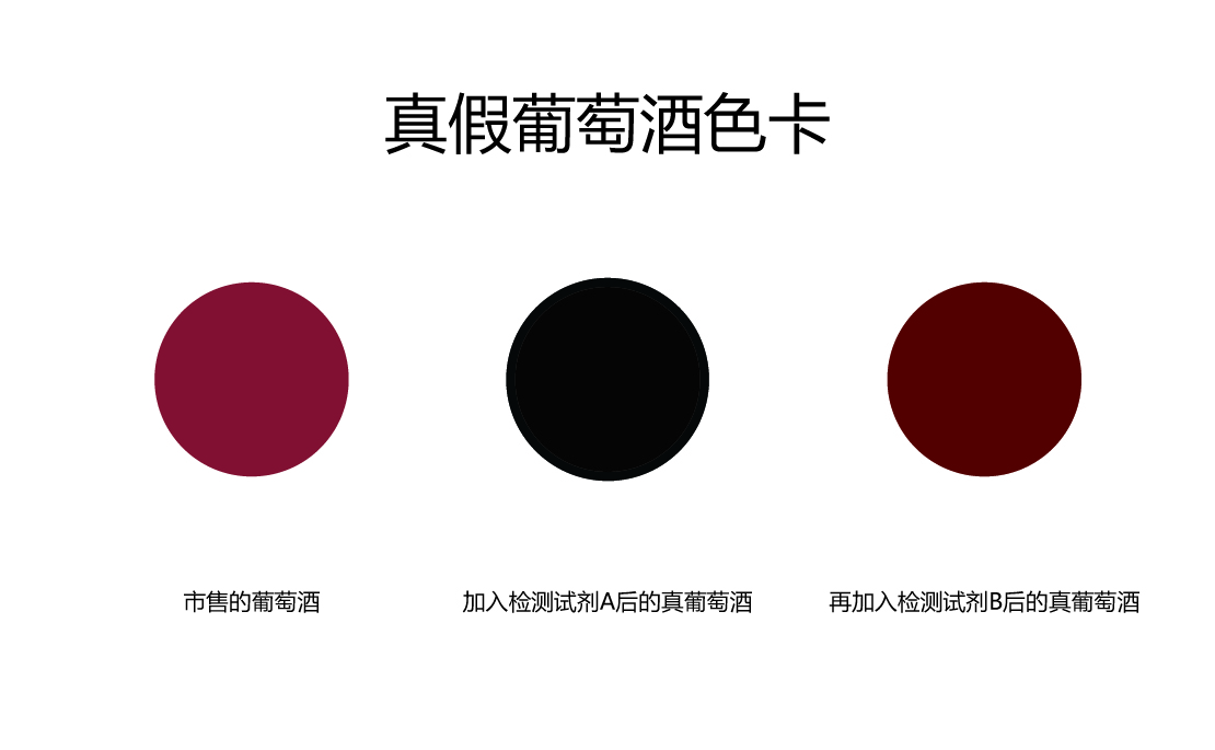 2.4:始終沒有發(fā)生顏色變化的是不含葡萄汁的假葡萄酒,有很淺的顏色變化可能是“半汁葡萄酒”,或是加了少量葡萄酒勾兌的假葡萄酒